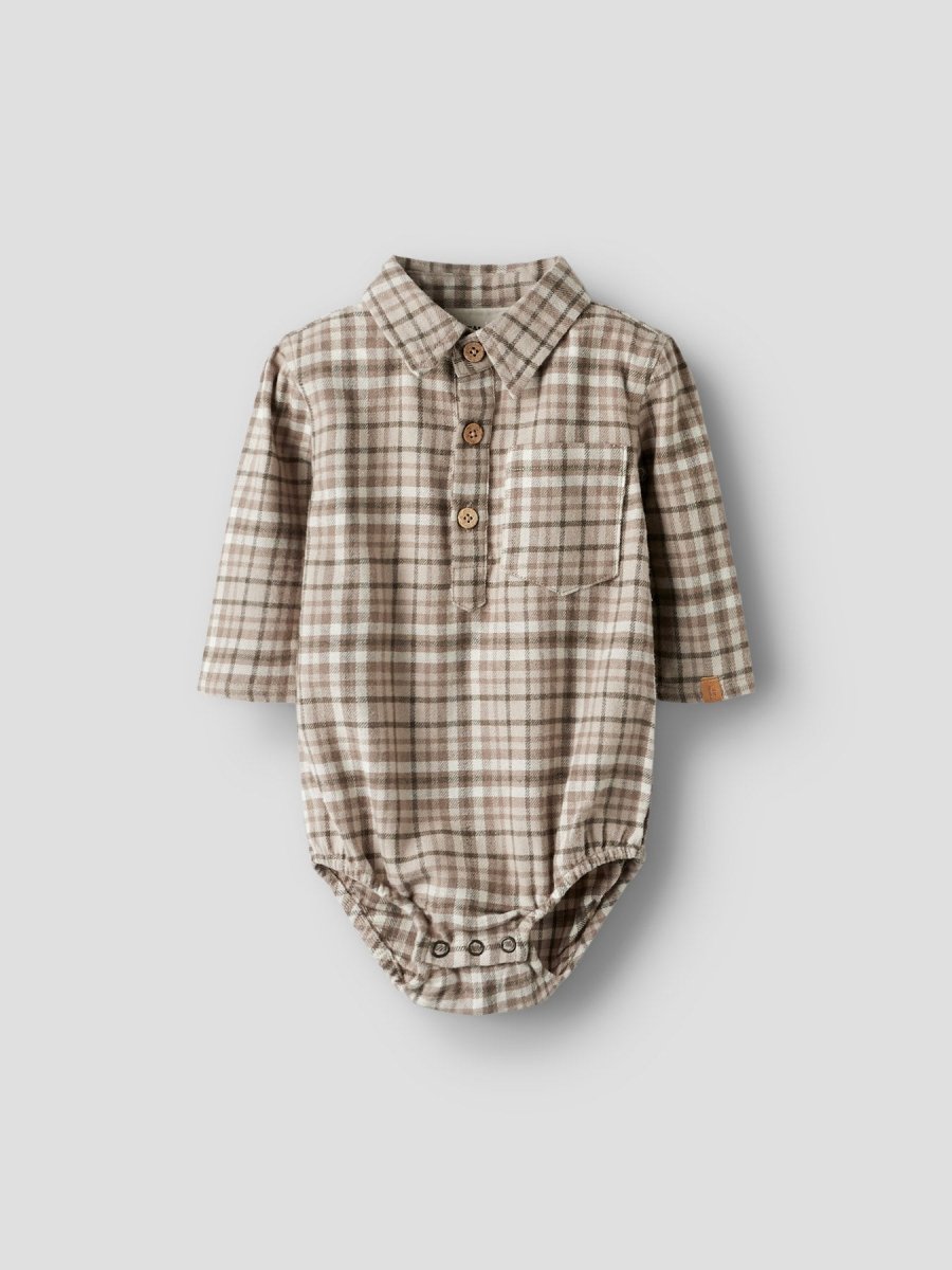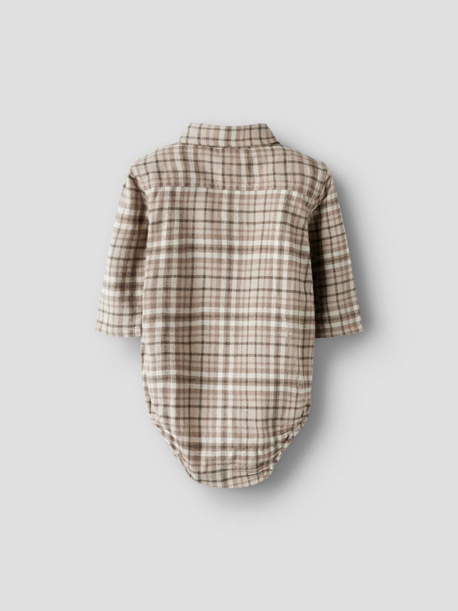 En klassisk og nydelig skjortebody fra Lil’ Atelier, laget i en supermyk og børstet bomullskvalitet som føles ekstra behagelig mot babyens hud.