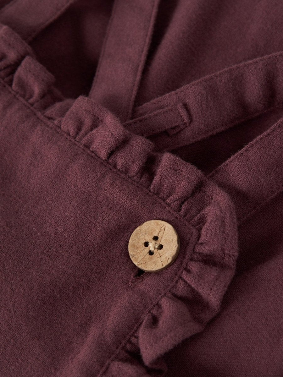 En nydelig romper fra Lil’ Atelier i den varme vinrøde fargen Catawba Grape. Denne løstsittende modellen er laget i 100 % økologisk bomull med vevd twillstruktur – myk, pustende og behagelig mot babyens hud.