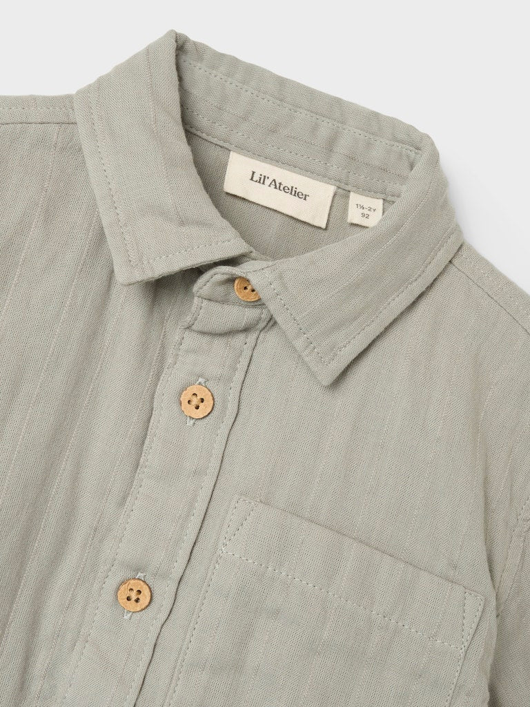 Supermyk og lekker kortarmet skjorte fra Lil' Atelier i nydelig grønnfarge og deilig, lett kvalitet.