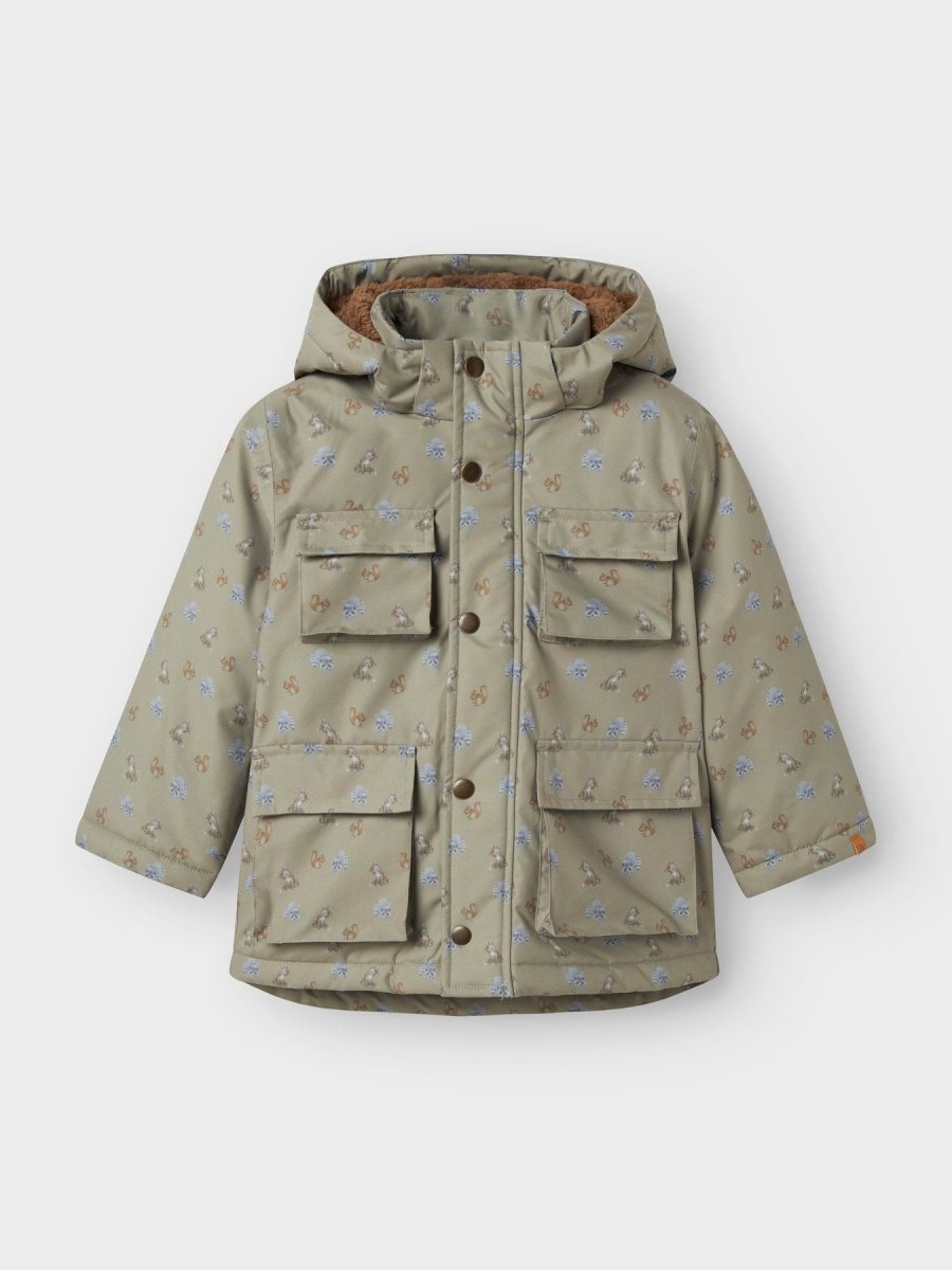 En funksjonell og gjennomført overgangsjakke fra Lil' Atelier, laget for små eventyrere i all slags vær. LASNOW05-jakken kombinerer tekniske egenskaper med et nydelig all-over-print inspirert av naturen.
