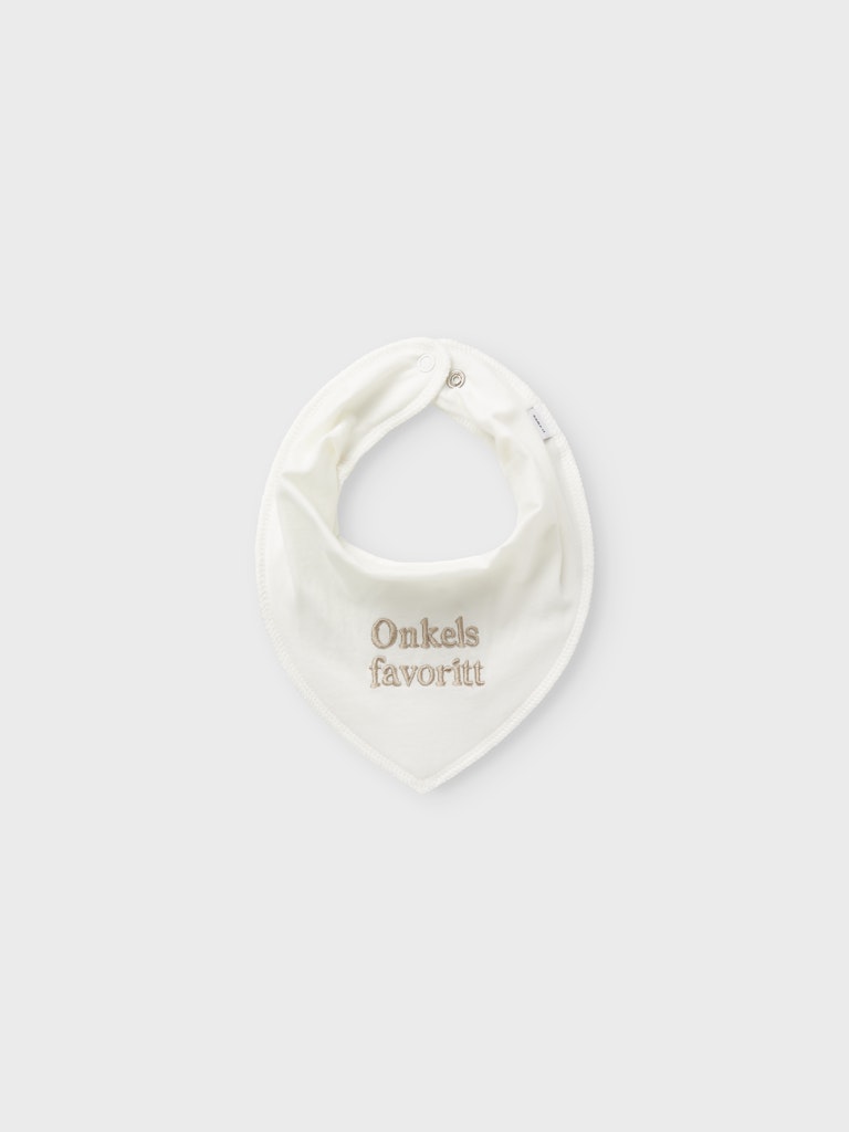 Suglesmekke til baby fra name it med teksten "Onkels favoritt" brodert på.