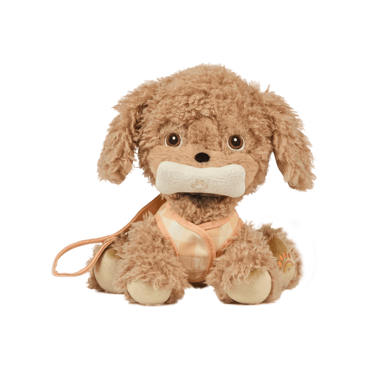 Møt Goldie, den solfylte, trofaste og livlige Dinkum Dog som sprer glede i hvert eneste rom. Med myk, resirkulert plysjpels i gyldne toner, brodert ansikt og søte velourdetaljer på ører, poter og tunge, er Goldie en kosevenn som raskt blir barnas nye favoritt.