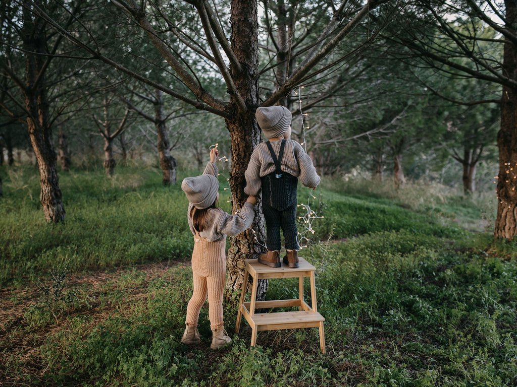 En hyllest til fortiden, skapt for nåtiden: Granny Teddy Tights er en hyllest til den nostalgiske vintage-mote som en gang prydet våre besteforeldres garderober, og de koselige barndomsminnene vi verdsatte med dem. Disse strømpebuksene kjennetegnes av sin tykke, brede ribbestruktur i et lunt teddystrikk. Den deilige teddyteksturen er kun på utsiden, mens innsiden har en varm og myk finish for maksimal komfort. Den fotløse designen er perfekt for å kombinere med barnets favorittsokker eller -sko, og gir maksimal frihet for små føtter.