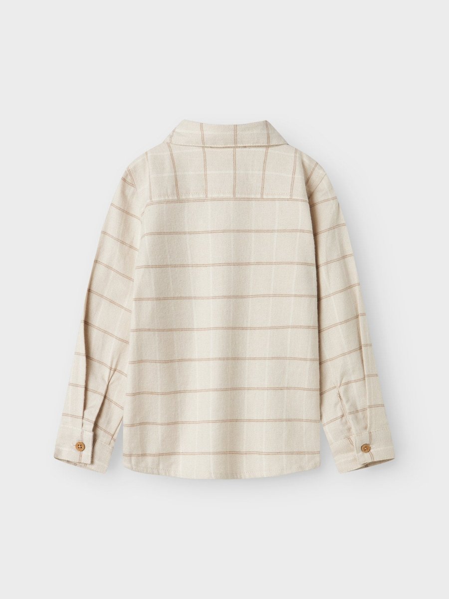 Superfin skjorte fra Lil' Atelier i nydelig beige bunnfarge med brune og offwhite striper.
