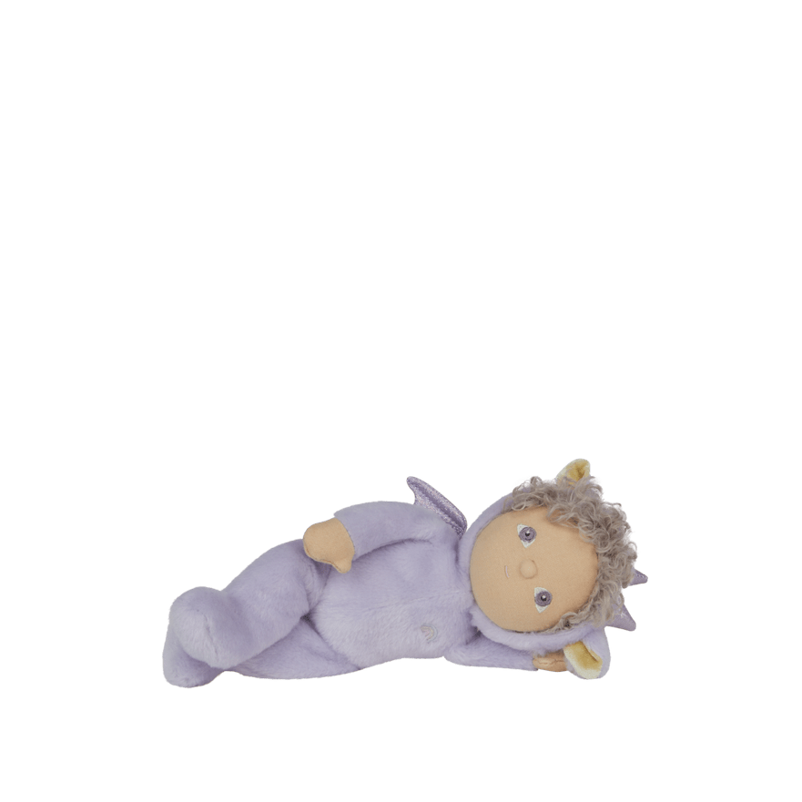 Med skimrende vinger, små horn og verdens mykeste kropp i en ikke-avtagbar drageonesie, er Duffy laget for små hender og store fantasier. Kroppen er posérbar med lett vektet fyll, noe som gjør dragen både kosete og perfekt til lek, samling eller pynt.