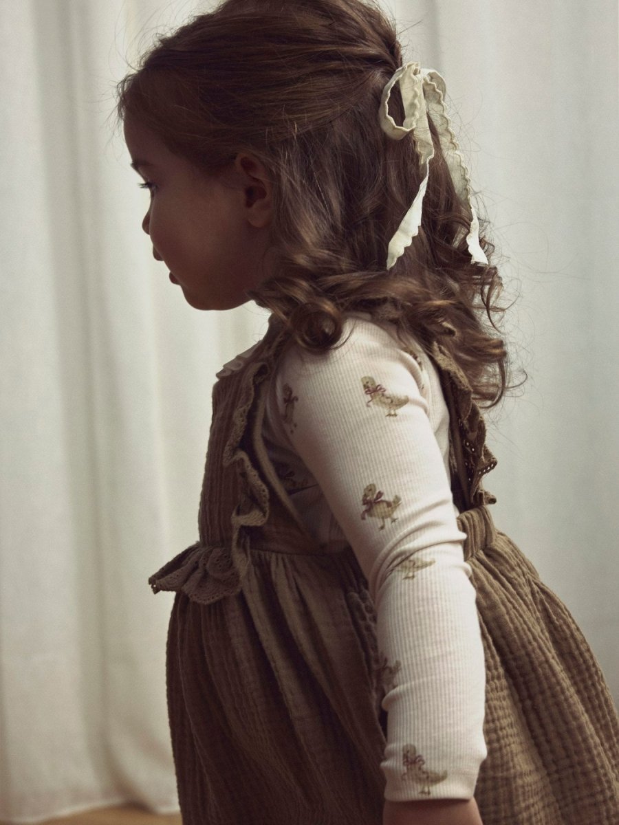 Søt langermet topp fra Lil’ Atelier i myk, ribbestrikket kvalitet.