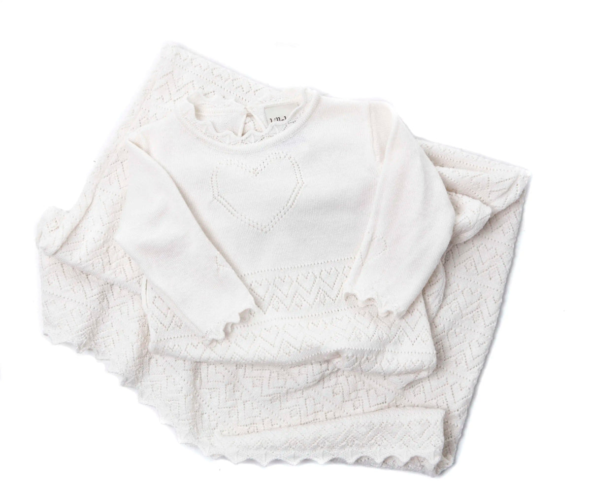 Lillelam Dåpskjole i hvit er en vakker og tidløs dåpskjole i 100 % merinoull, laget med høyeste kvalitet og mykhetsgrad. Kjolen har et nydelig hjertemønster som gir den et unikt og elegant uttrykk, og passer perfekt til både gutt og jente.