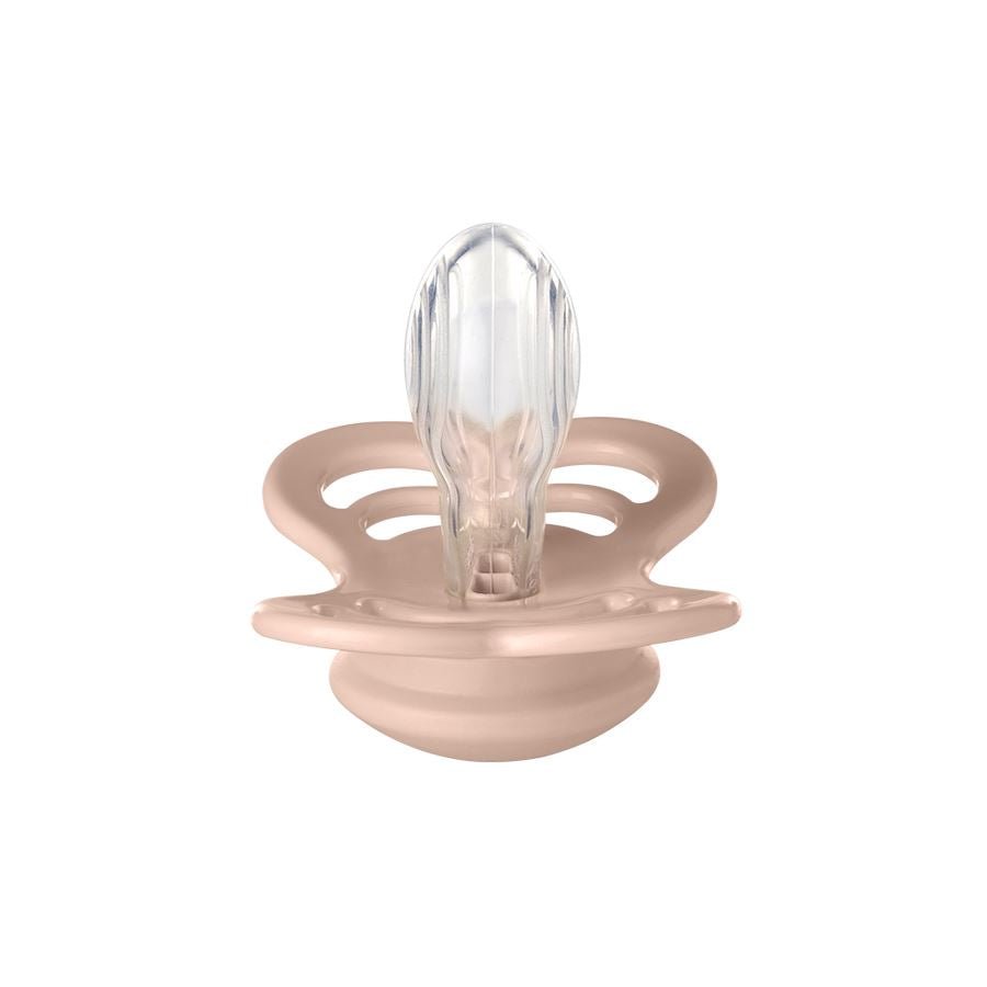 BIBS Supreme har et moderne og funksjonelt design med et bredt skjold og rene linjer. Den flate, symmetriske formen gir god plass rundt munnen og er utviklet med fokus på komfort og sunn utvikling.