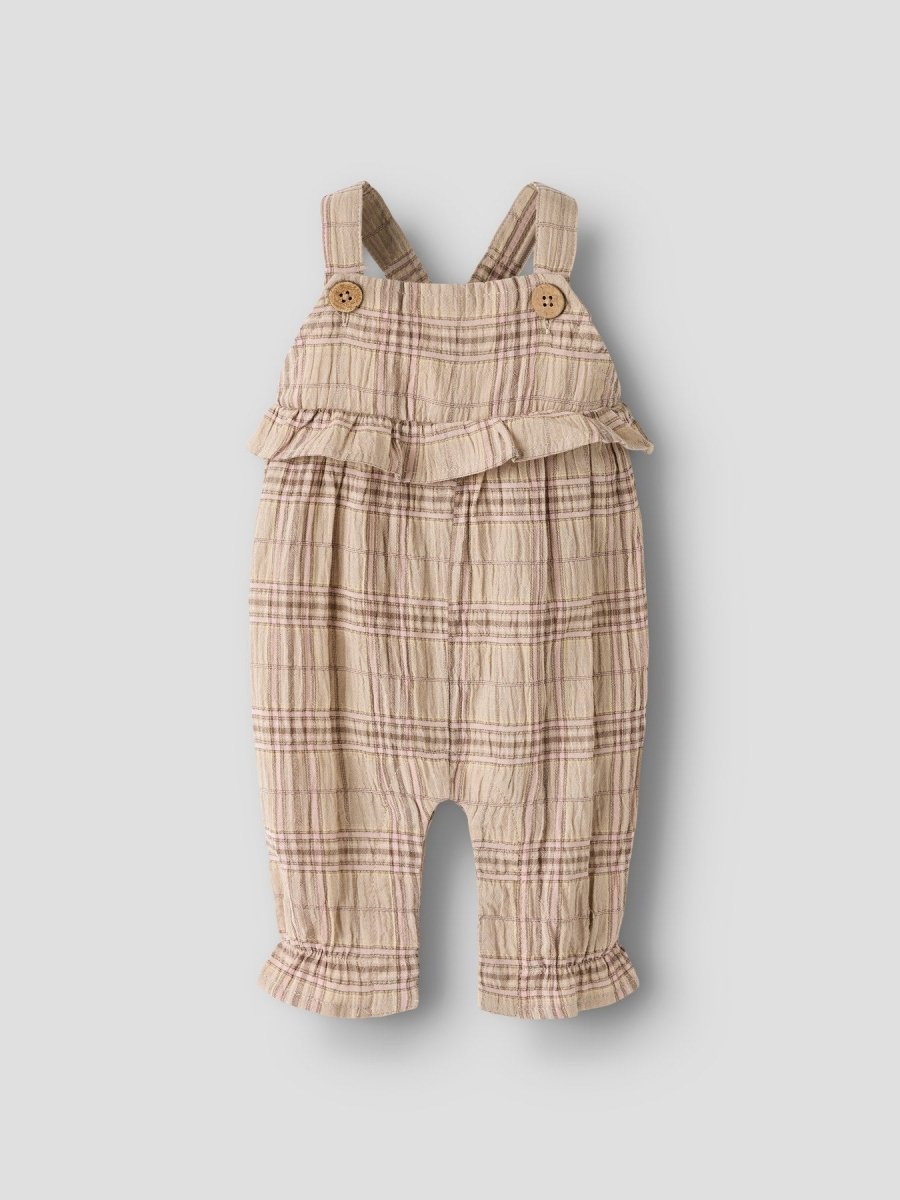 DIEMA loose overall fra Lil’ Atelier er en lun og tidløs selebukse i myk, vevd kvalitet med lett crinkle-struktur. Den løse passformen gir god bevegelsesfrihet, mens justerbare seler og elastikk nederst på bena sørger for en komfortabel og praktisk passform til små kropper i vekst. Det delikate rutemønsteret i Oxford Tan gir et klassisk uttrykk som passer like godt til hverdag som til finere anledninger.